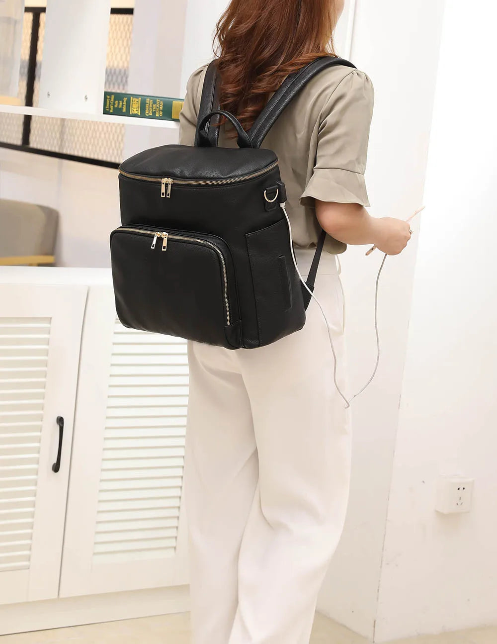 Ce sac à langer en cuir végétal allie élégance et fonctionnalité, offrant une grande capacité de rangement avec ses multiples poches, un porte-biberon isotherme et une trousse pratique pour organiser tout le nécessaire de bébé.